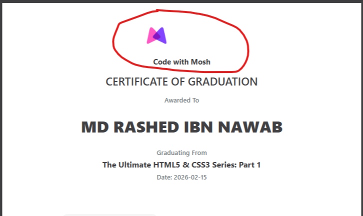 Already there is no way to verify the certificate online. Now, its even more frustrating to get such messy acknowledgements from a platform like Code With Mosh.